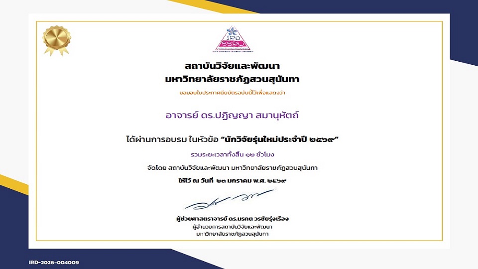 โครงการพัฒนา ศักยภาพนักวิจัยรุ่นใหม่ โดย สถาบันวิจัยและพัฒนา มหาวิทยาลัยราชภัฏสวนสุนันทา