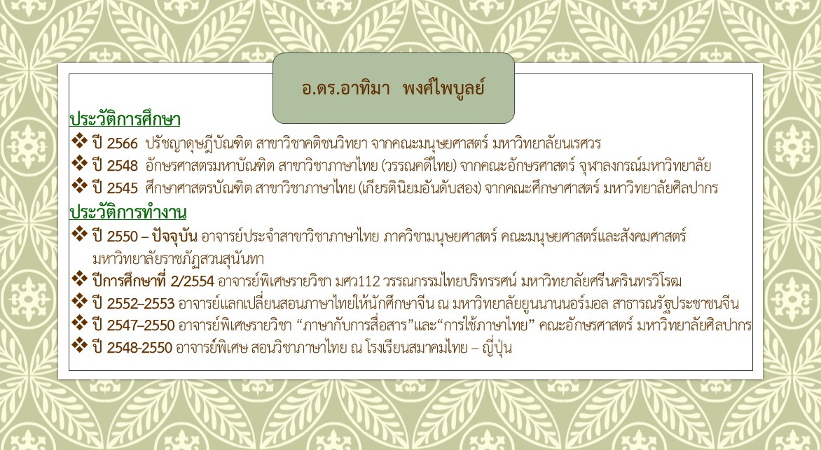 อาจารย์ ดร. อาทิมา พงศ์ไพบูลย์